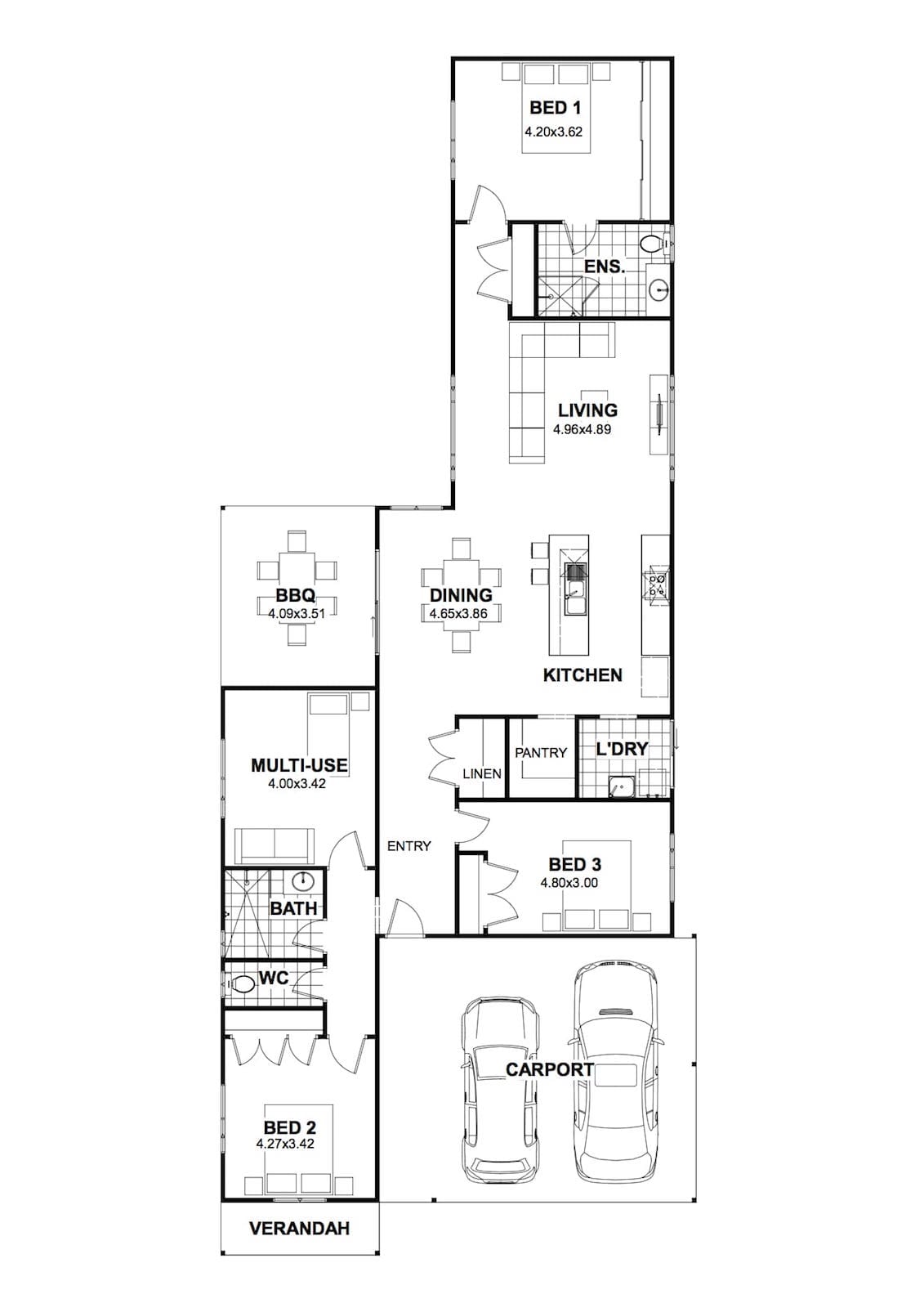 • The ‘S’ shape of this design creates the opportunity for an external garden entry feature.